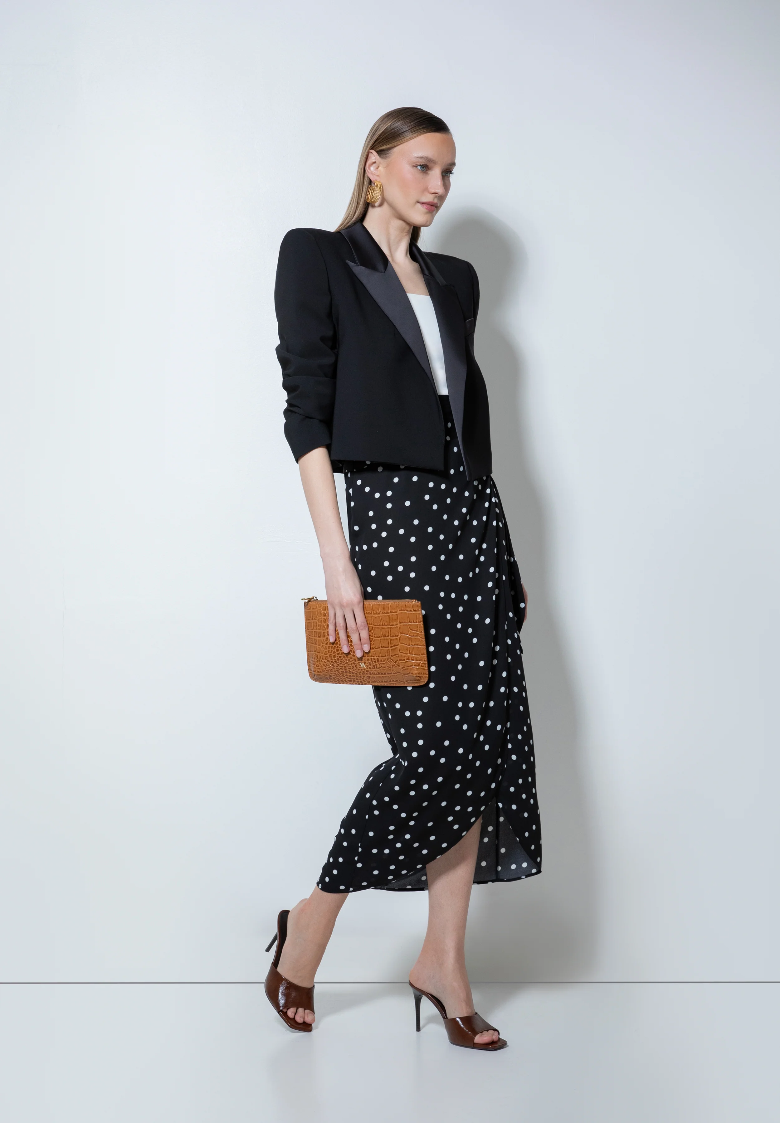 Falda midi envolvente de crepé fluido que anuda en el costado.